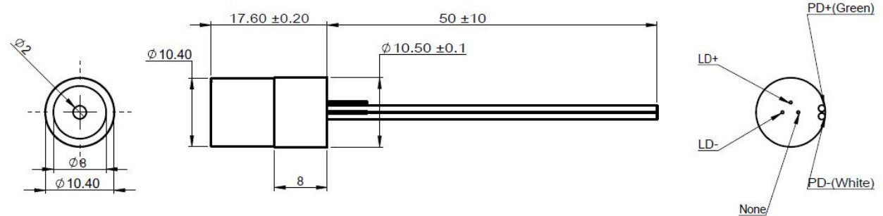 It is a customized laser module, specia designed with compact size 10.4mmx17.6mm used in medical instrument.