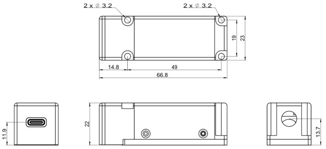| 405nm | UV405D075-66.8x23x22-2.0 | Diode Laser | 75mW | 66.8x23x22mm |